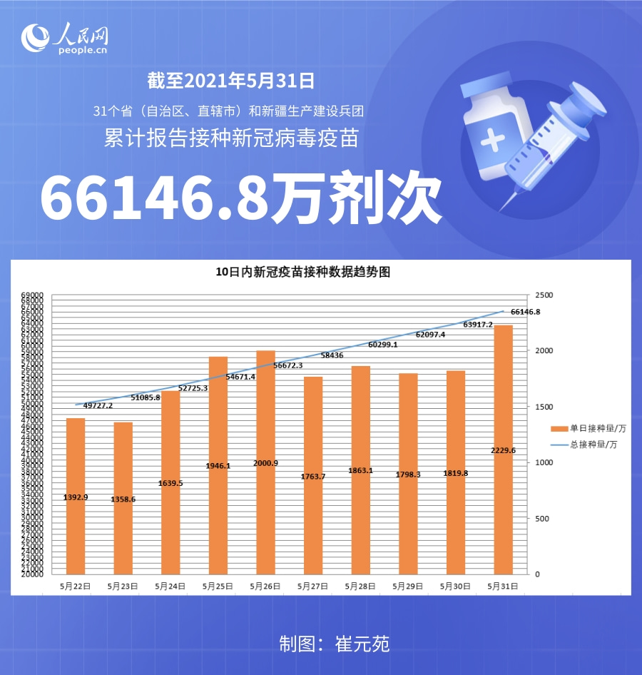国家卫健委:截至5月31日全国累计接种新冠病毒疫苗66146.8万剂次