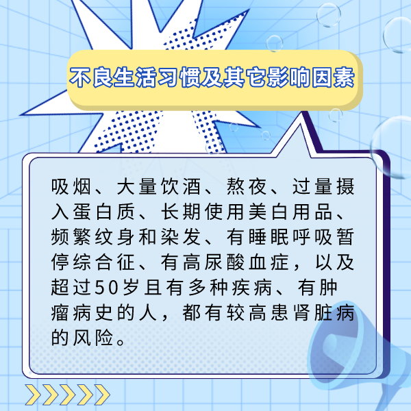 人民网北京10月20日电 (记者乔业琼)蛋白质进入体内后会分解为肌酐、尿酸、尿素等代谢废物,这些物质大都经肾脏排出。如果大量摄入蛋白质,代谢废物在体内就会明显增多,进而加重肾脏负担,有可能引发肾脏疾病。其实不仅是过量摄入蛋白质,长期使用美白用品、频繁纹身和染发、吸烟、大量饮酒、熬夜等人群,都有较高患肾脏病的风险,更要关注自己的肾脏。