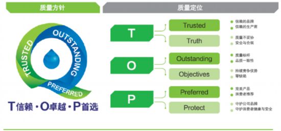 蒙牛自成立之日起,就提出“没有质量一切都是负数”的质量理念。自2018年起,蒙牛以消费者为核心,启动“品质提升”策略,致力于全产业链技术与品质的全面提升。通过“质量管理体系3.0升级”“食安三级风险地图”“奶及奶制品安全控制与质量提升关键技术”“全线产品欧盟采标”“营养健康新升级”等项目,使蒙牛的质量管理从“更安全”走向“高品质”。