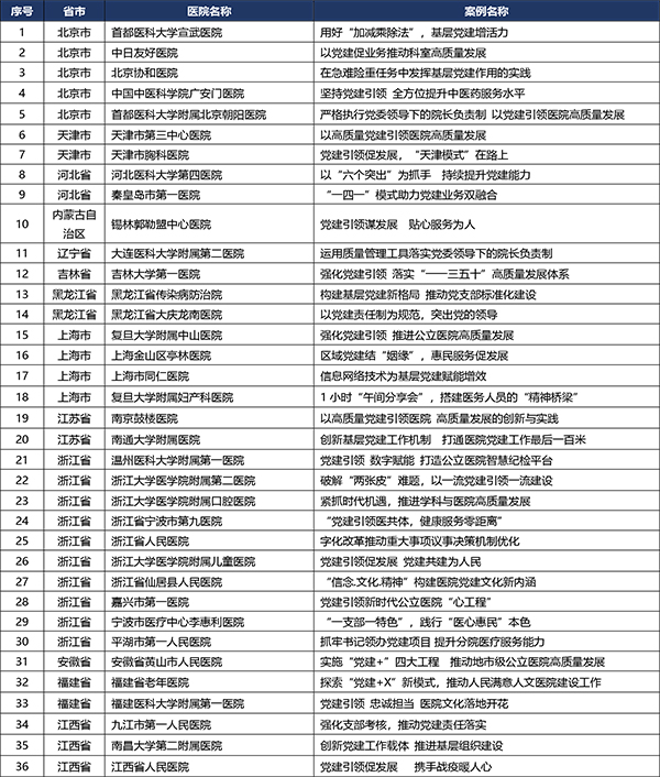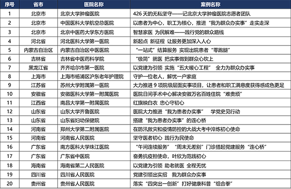 2020-2021年度全国公立医院党建征集活动入选案例名单揭晓