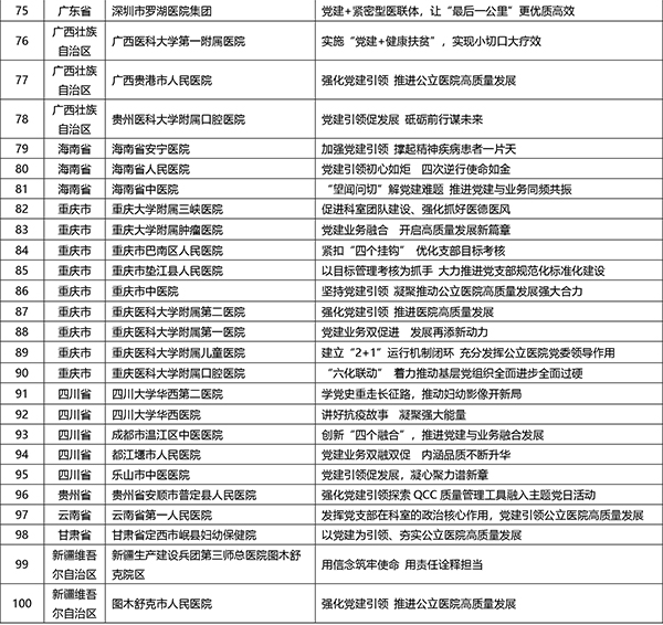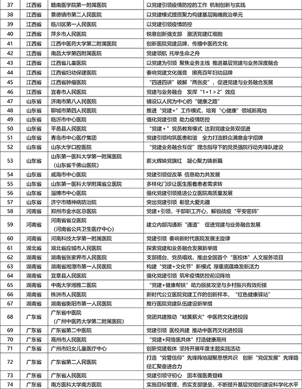 “2020-2021全国公立医院党建创新案例”获选名单