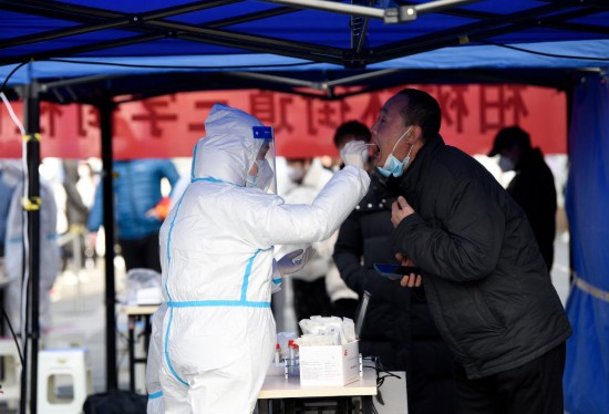 12月17日,市民在西安市碑林区柏树林街道三学街社区核酸检测点进行核酸检测。新华社记者 刘潇 摄