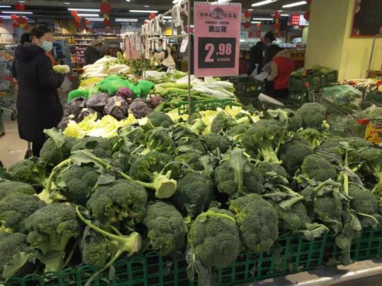 不只是封控区内,天津市商务局副局长李宏表示,为应对突发疫情,天津立即启动群众生活供给保障联动应急响应机制,发动大型批发市场、超市、菜市场等市场主体提前组织货源,加强备货。目前,天津市内农贸批发市场货源充足,肉蛋菜等供需保持基本平衡,蔬菜库存量由供应全市2天水平提高到3至4天,米面油存量由20天提高到30天。