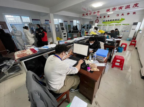 除了奋战在核酸检测一线的医护人员,基层党员干部也坚守岗位,构筑起了疫情防控的坚固防线。在绥中县中风险封控区盛华园小区所在的工人社区,社区党委书记韩雨瞳正一边用电脑填写报表,一边打电话协调防疫物资,她的声音已经嘶哑,眼睛里布满血丝。