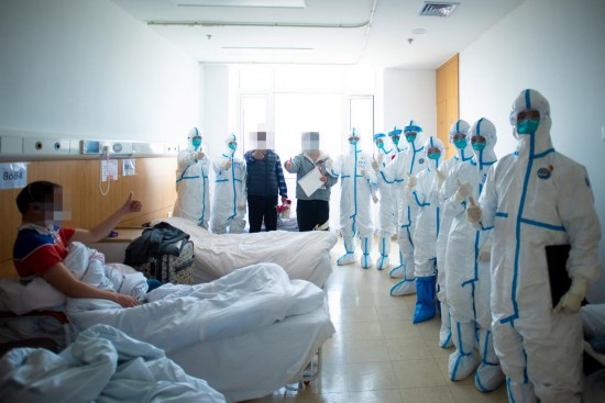 瑞金医院北院集中隔离点的医护人员和患者(新华社记者丁汀摄)