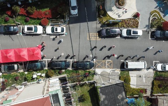 位于闵行区东川路的紫竹半岛,医护人员“搭乘”由电三轮改装好的移动检测车,开到每个楼栋门前,然后由楼组长在群内按楼层通知,一户户下来检测。专家也提醒市民朋友:一是事先做好登记并截屏保存,注意信息登记的准确性、完整性。二是按照工作人员安排指引,分批、有序、规范佩戴口罩前往采样点,保持2米距离,避免聚集交谈,防止交叉感染。采样后立即戴好口罩尽快回家。