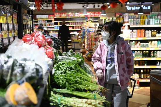 4月18日,在西宁市城西区宁食新心乐连锁超市海湖店,市民选购蔬菜。新华社记者 范培珅 摄