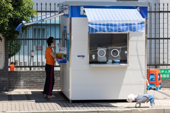 5月31日,在上海市黄浦区福佑路上,市民在核酸采样工作站做采样检测。新华社记者 金立旺 摄