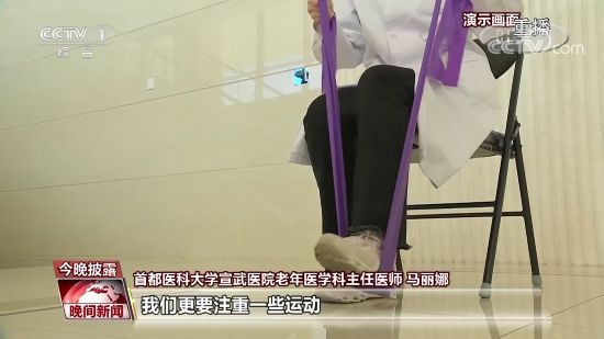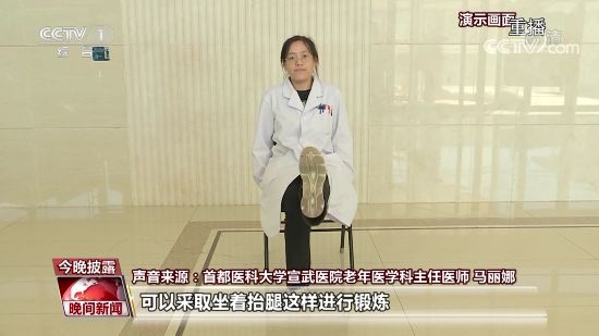 首都医科大学宣武医院老年医学科主任医师 马丽娜:坐轮椅的老年人,可以采取坐着抬腿这样进行锻炼。