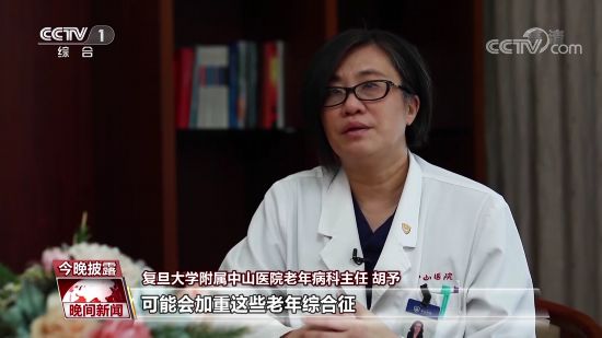 复旦大学附属中山医院老年病科主任 胡予:老年综合征是老年人的一些症状的一个聚集,包括认知功能不全、肌少症、营养不良、便秘、多重用药等等。当然如果老年人伴有各种各样的慢性疾病,比方说高血压、糖尿病这些非常常见的慢性疾病,可能会加重这些老年综合征症状的表现。