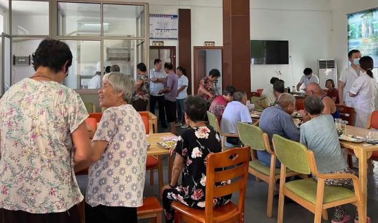 浙江省绍兴市一家民营养老服务机构内,老人们在用餐。受访者供图