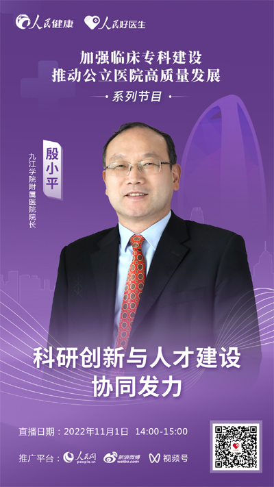 11月1日14:00,九江学院附属医院院长殷小平将做客直播间,以“科研创新与人才建设协同发力”为题与大家进行探讨。