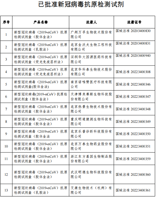 国家药监局已批准36个新冠病毒抗原检测试剂