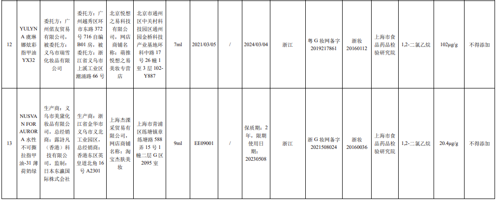 13批次化妆品检出禁用原料!涉洗发露、指甲油等
