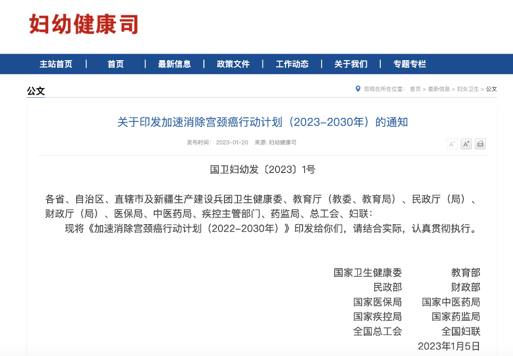 保护和增进广大妇女健康 10部门印发加速消除宫颈癌行动计划
