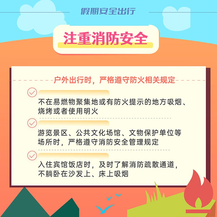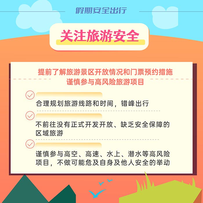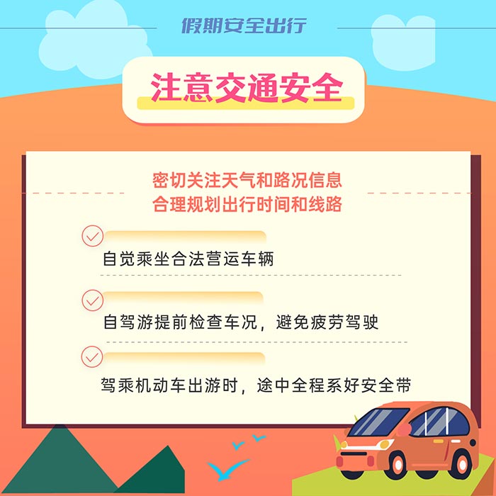 近日,全国各地陆续迎来出行高峰。“五一”假期外出游玩、走亲访友,一定要注意出行安全,做好充分出行准备。这份安全提示请收好!