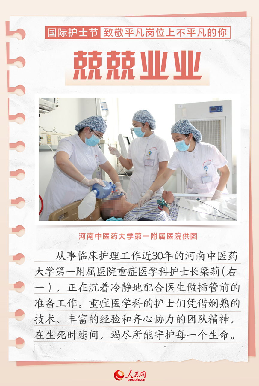 护士背后是无数个没有硝烟的战场,他们一次次与病魔战斗,一次次将患者从死亡线上拉回。无菌操作、三查七对、翻身拍背、吸痰输液……365天,寒来暑往,他们日夜不分地守护在患者身旁,凝仁爱之心,聚守护之力,促人类健康。5月12日是国际护士节,人民网记者采访了8位来自不同医院,奋战在一线的护士们,让我们一起走近“白衣天使”。