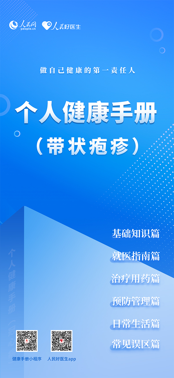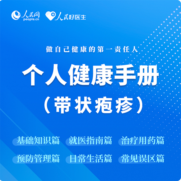 那么,哪些人容易得带状疱疹?得了带状疱疹怎么办?该如何预防?为了深入开展健康中国行动和爱国卫生运动,坚持预防为主,加强重大慢性病健康管理,提高基层防病治病和健康管理能力,5月25日,人民网·人民好医生客户端正式推出科普服务系列产品——《个人健康手册》,旨在按照单一病种,汇集科学的健康知识,纠正健康认识误区,助力大众提高自我健康管理能力和健康水平。值此全国护肤日之际,特别推出《个人健康手册(带状疱疹)》,希望通过这本小小的手册,帮助大众了解带状疱疹,预防并减少皮肤疾病的侵害。