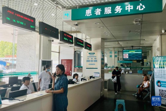 8月6日,在平原县第一人民医院患者服务中心内,患者向值班医生咨询情况。新华社记者 高天 摄