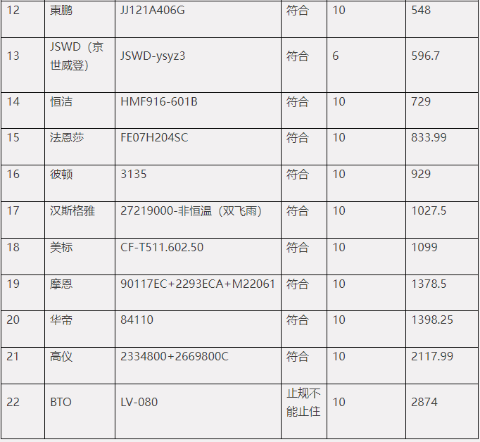 另外,本次比较试验的30款样品中,水效明示为2级的有2款,3级的有6款,还有1款明示手持花洒2级、固定式花洒3级,其余21款均未加施水效标识。