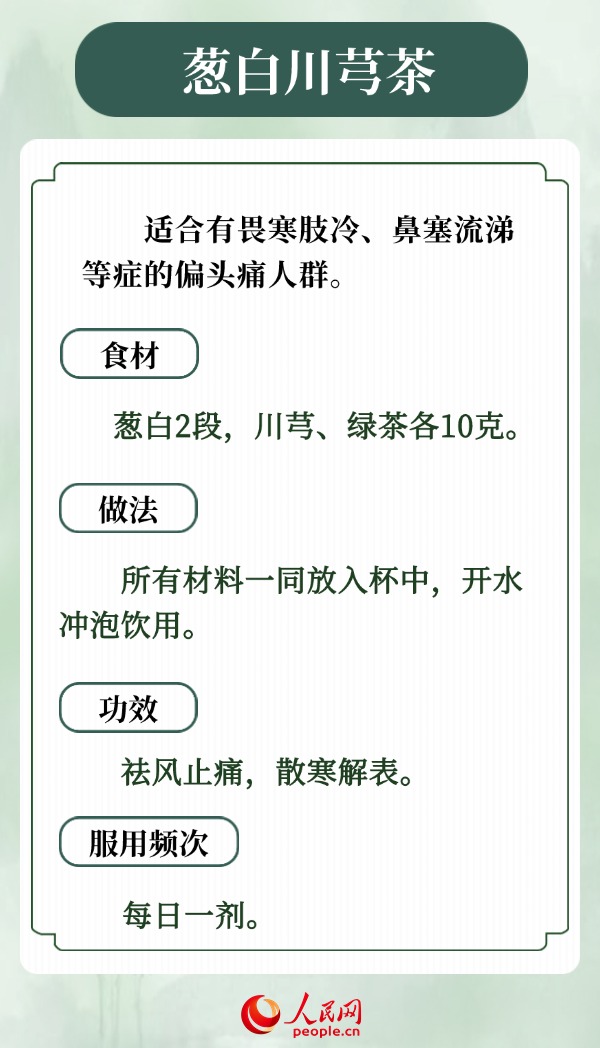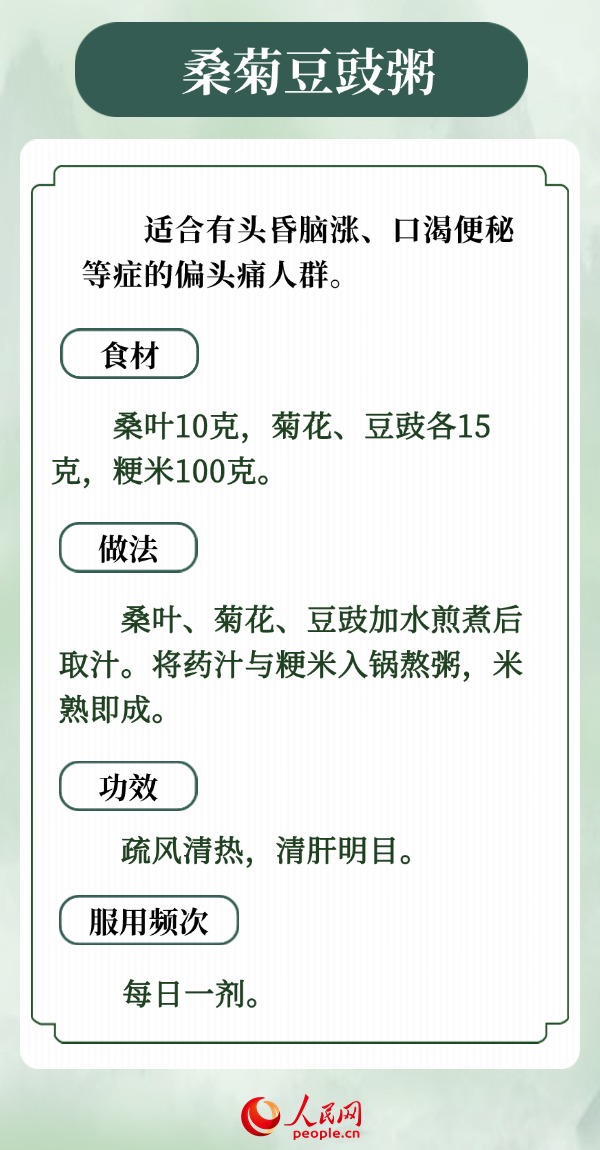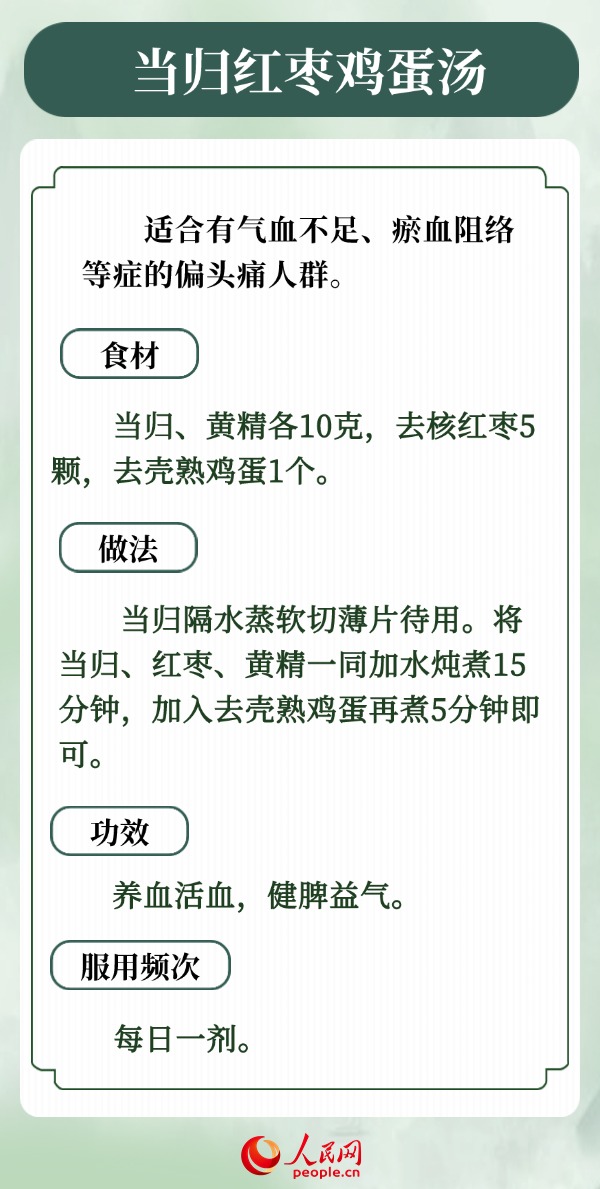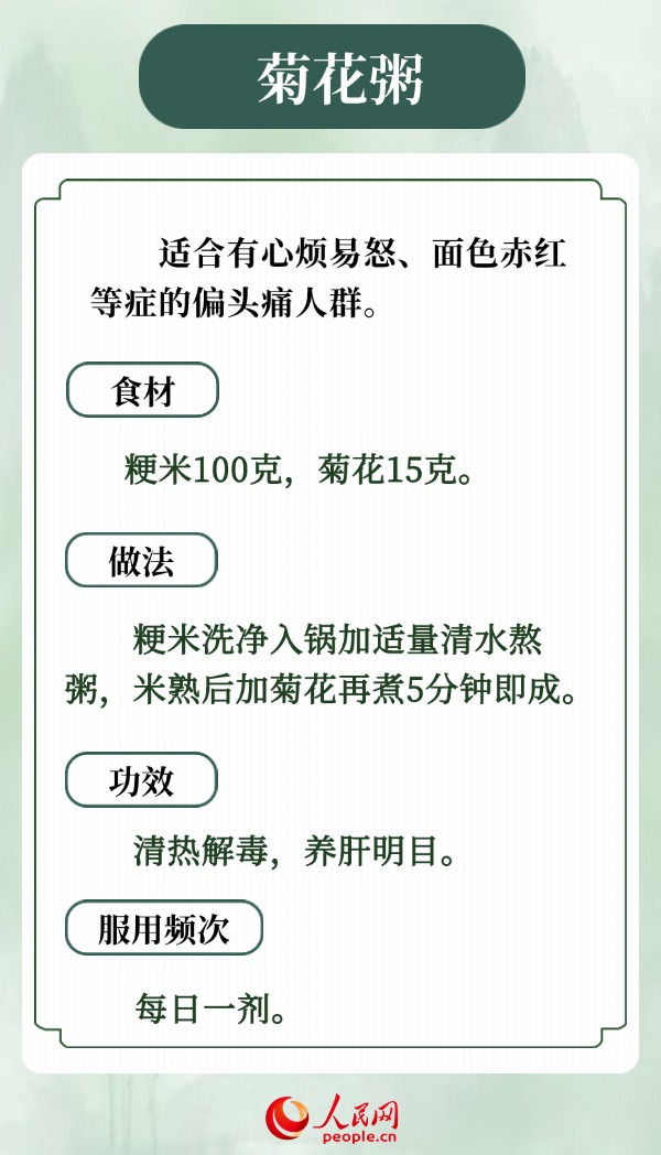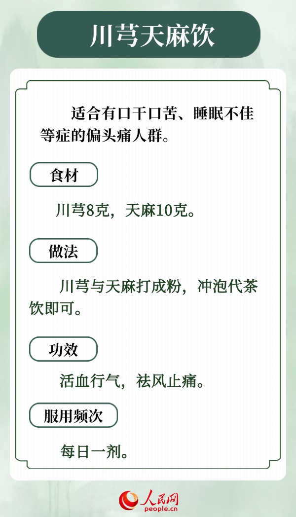 现代社会很多人深受偏头痛的折磨,也因为太过常见,大家都认为是小毛病,忍一忍就过去了。但其实,偏头痛是一种神经血管性疾病,若不经规范治疗,偏头痛会反复发作,还可引其他严重的并发症。江苏省中医院神经内科副主任中医师朱元在接受人民网采访时介绍,中医将偏头痛归为“头风”范畴,通过辨证论治可以很好地改善偏头痛症状,减少偏头痛发作频率。除了常规药物治疗,生活中还可以采用一些食疗方法。