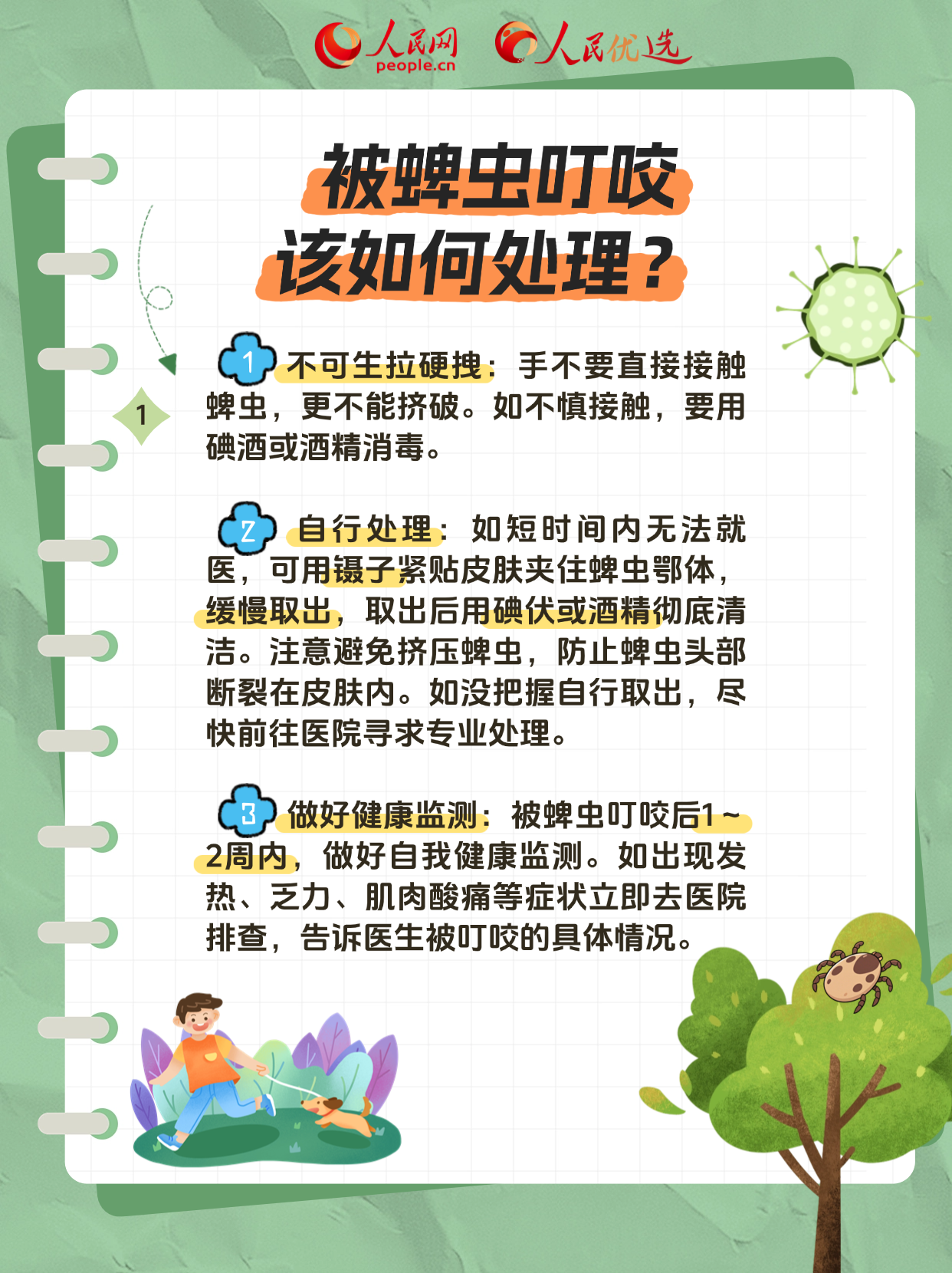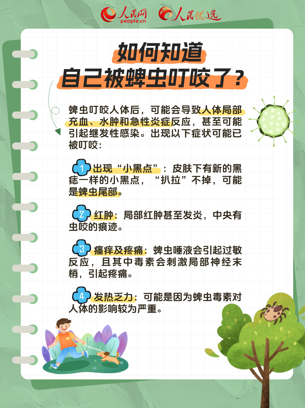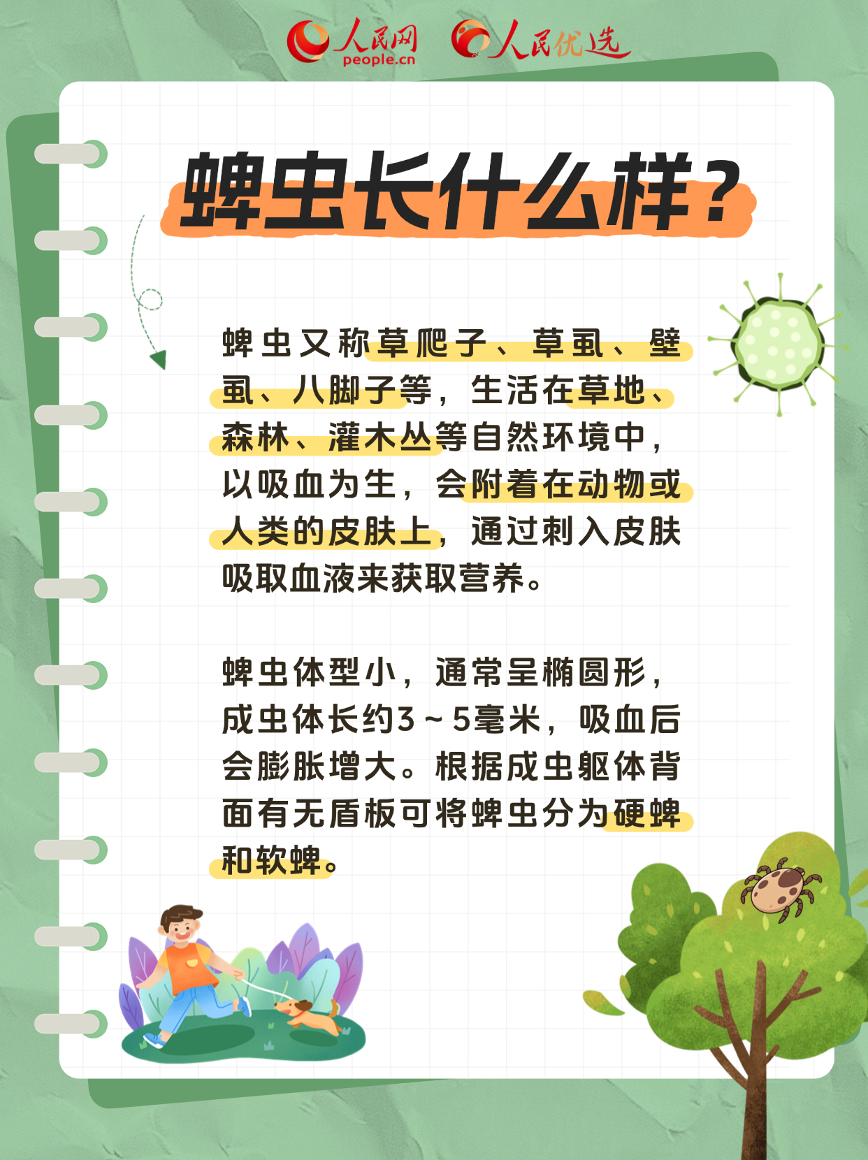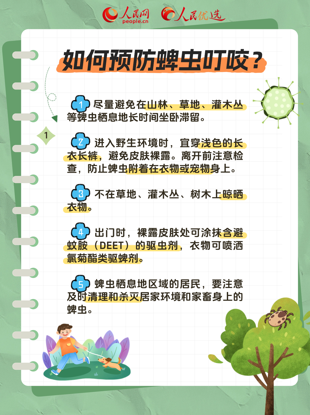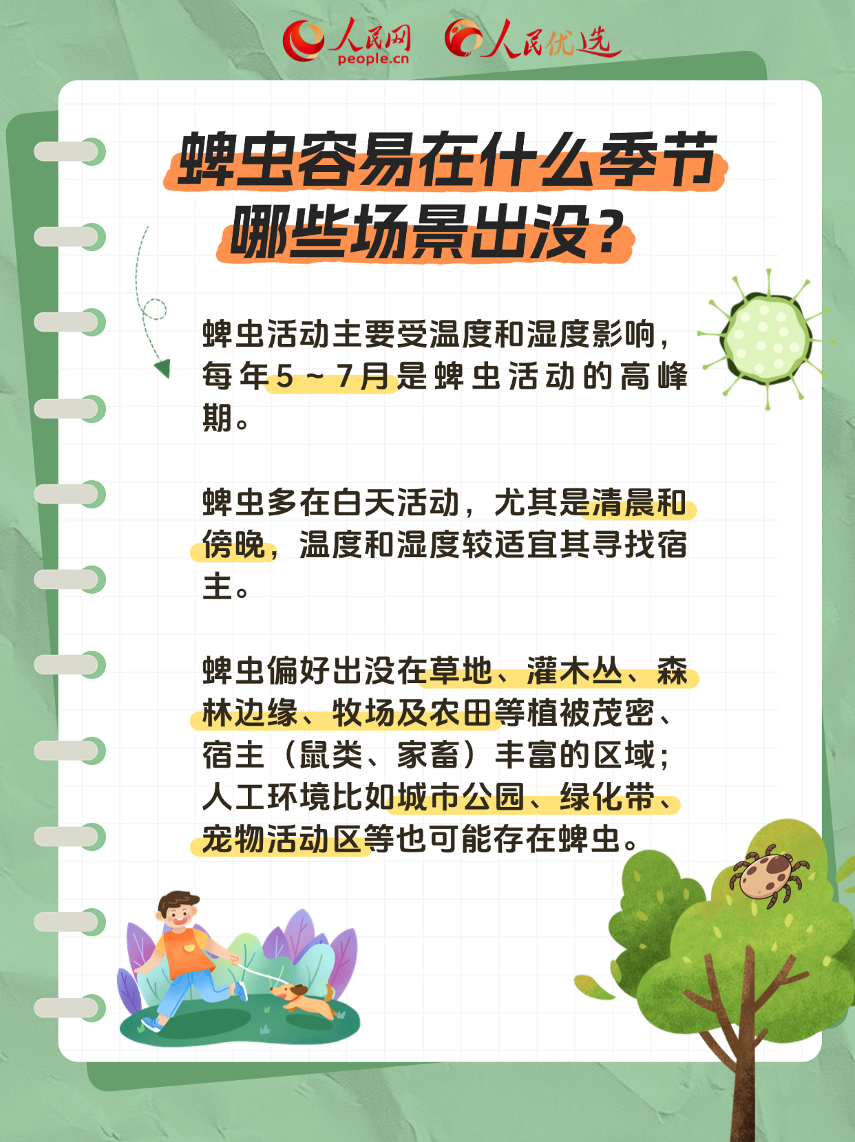 222夏季是奔赴山野的好时节,但也是蜱虫“蹦迪”的高峰期。我们在出门郊游、田间劳作时要小心提防,尤其是养宠物的小伙伴们!下面这份防蜱虫指南,请收好。