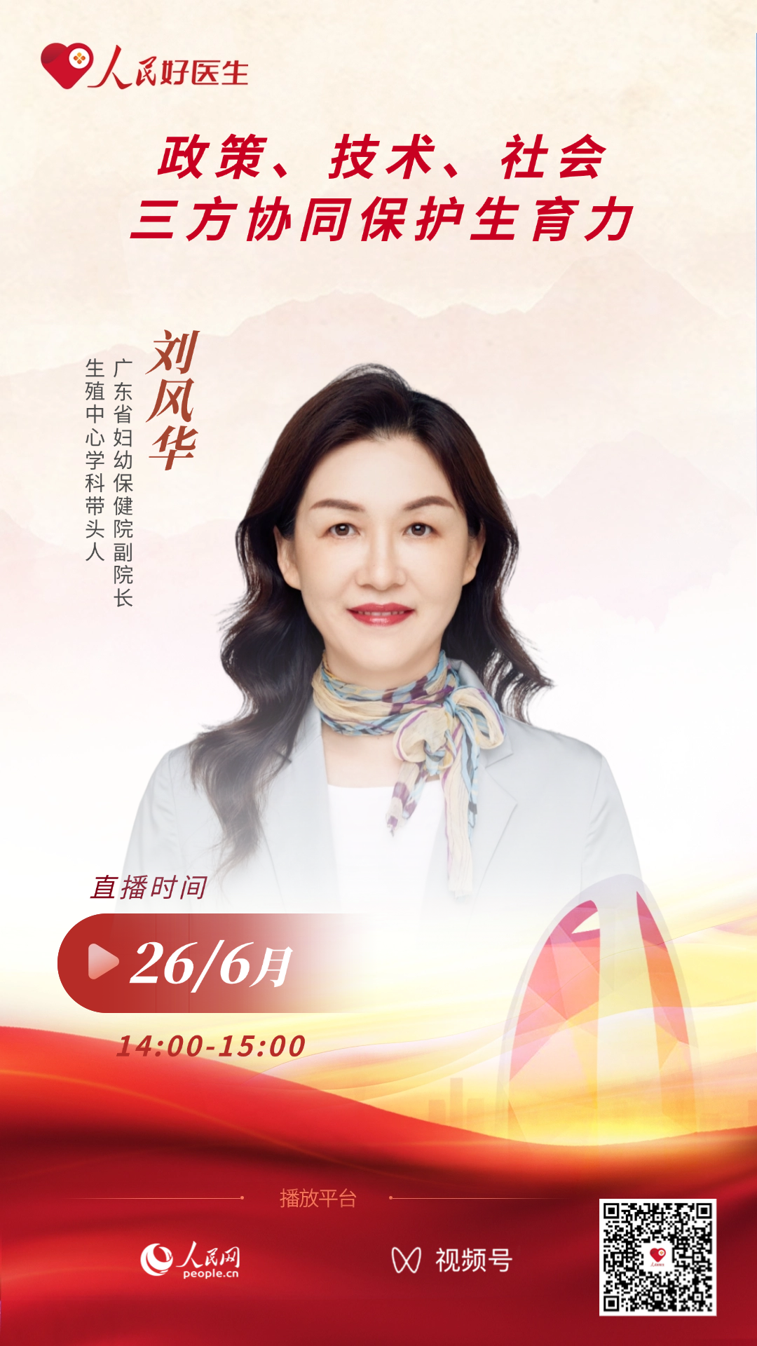 2025年6月26日14:00-15:00,广东省妇幼保健院副院长、生殖中心学科带头人刘风华将做客“人民好医生”科普直播间,就政策、技术、社会三方协同保护生育力等问题进行交流,欢迎届时收看。